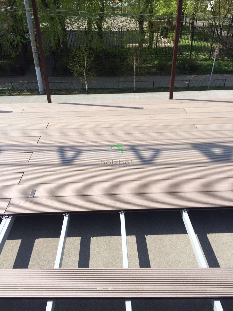 Проходимость с барах Москвы очень большая, и не каждое покрытие пола выдержит бурные выходные с танцами девушек на каблуках. В кафе - бар «Искра» смонтирована качественная террасная доска, которая выдержит не только большой поток посетителей, танцы на каблуках но и погодные перемены на открытой террасе. Проведя предварительную работу, была выбрана шовная террасная доска на регулируемых опорах , отлично подходящая по всем характеристикам. Теперь посетители бара, смогут весело и комфортно отдыхать.